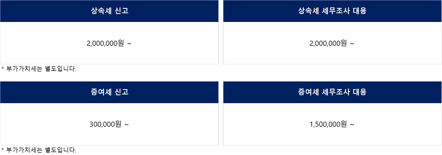 상속세 및 증여세 수수료 안내 드립니다.