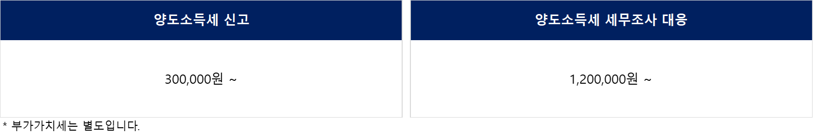 양도소득세 수수료 안내 드립니다.